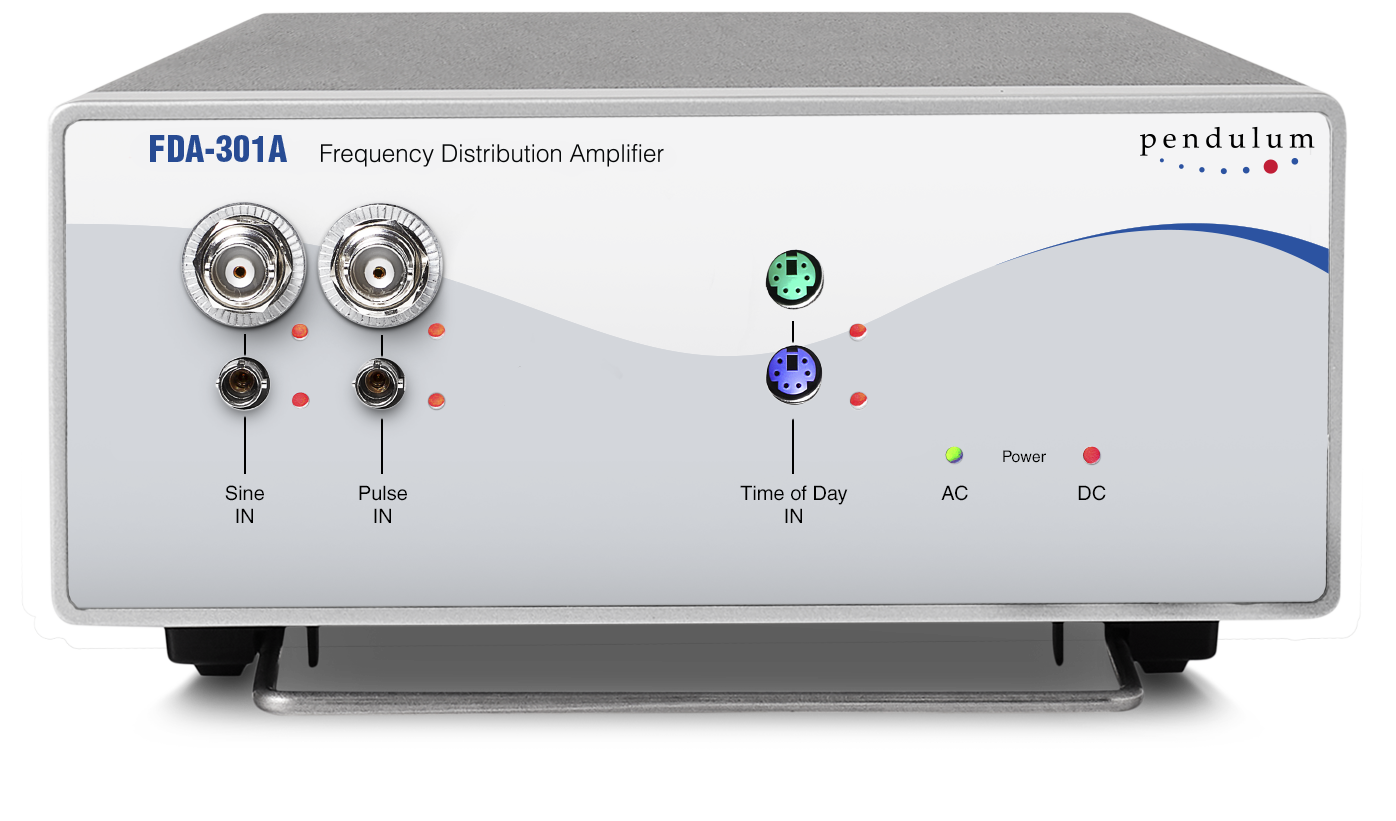 The Time & Frequency Distribution Amplifier FDA-301A is a very versatile fiber and coax Distribution Amplifier designed to distribute various signal types from a central frequency standard, and/or a central timing source, to multiple remote receiving points. It has a modular output design, with three output module slots at the rear, giving up to 18 fiber connections or 12 coax connections from a single unit.